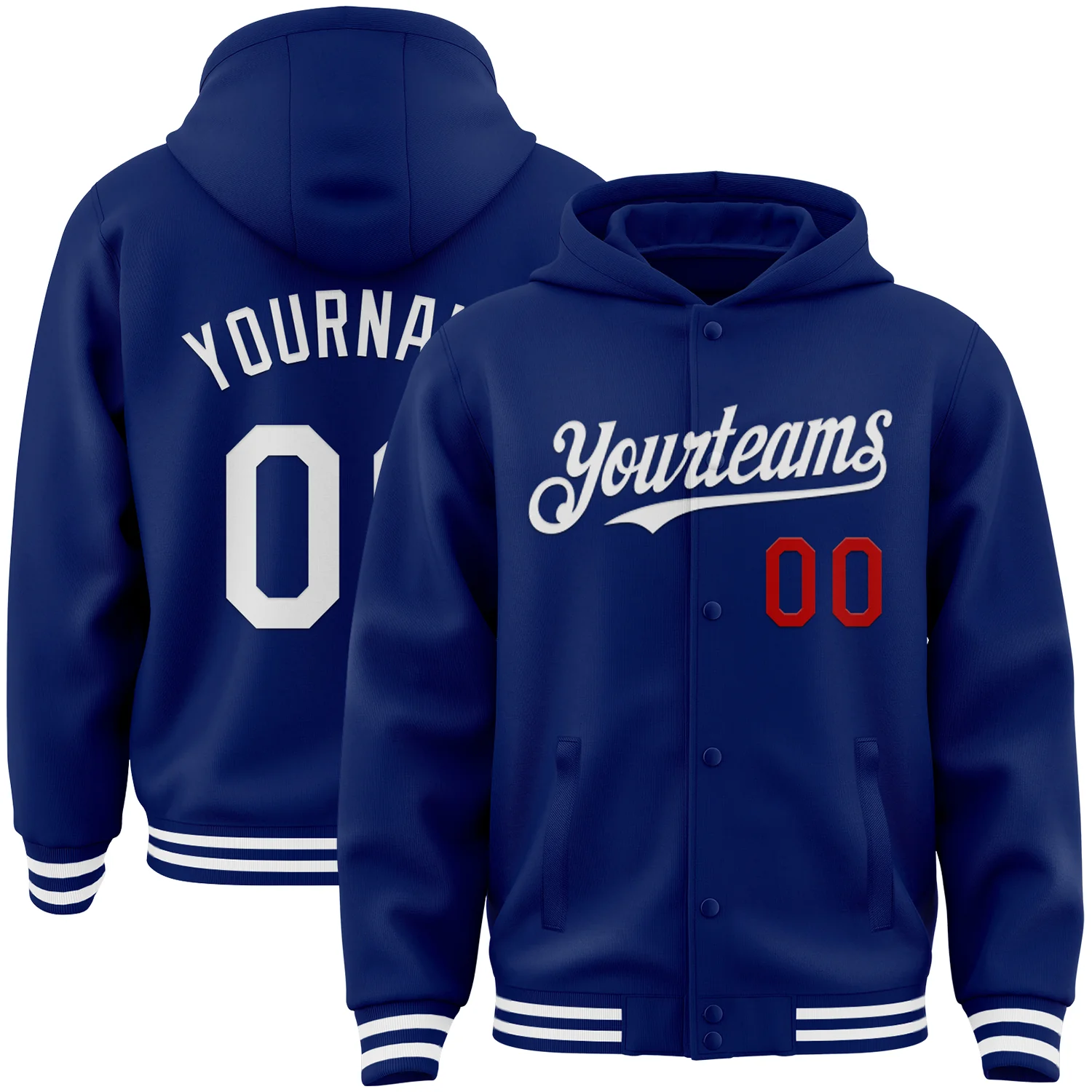 Custom Royal Red-White Bomber Full-Snap Varsity Letterman Hoodie Jacket