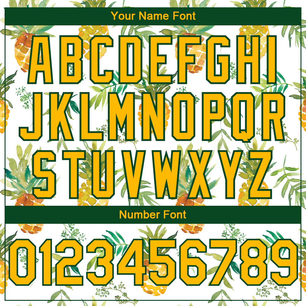 Custom White Gold-Green Tropical Hawaii Fruit Pineapple 3D Bomber Full-Snap Varsity Letterman Hoodie Jacket