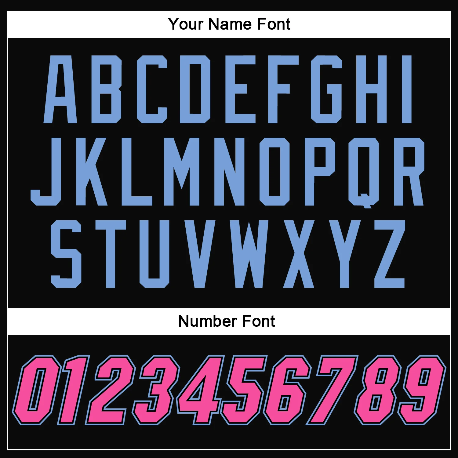 Custom Black Pink-Light Blue Bomber Full-Snap Varsity Letterman Two Tone Jacket
