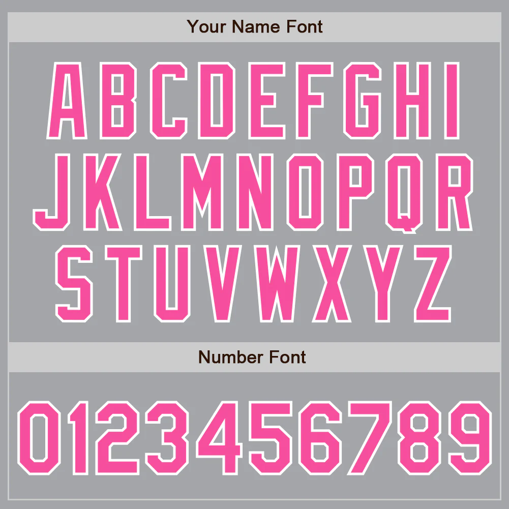 Custom Gray Pink-White Bomber Full-Snap Varsity Letterman Two Tone Jacket