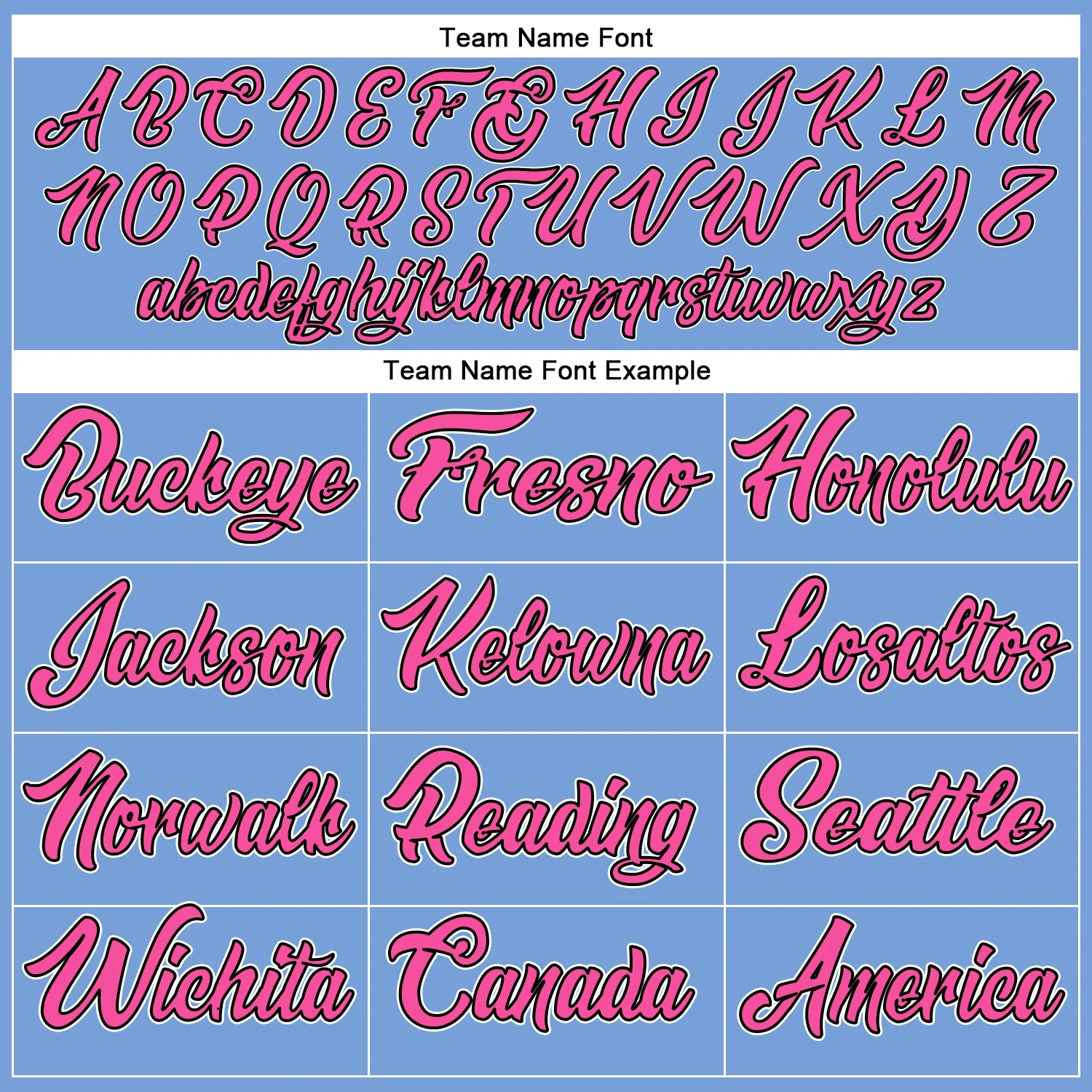 Custom Pink White Black-Light Blue Bomber Full-Snap Varsity Letterman Jacket