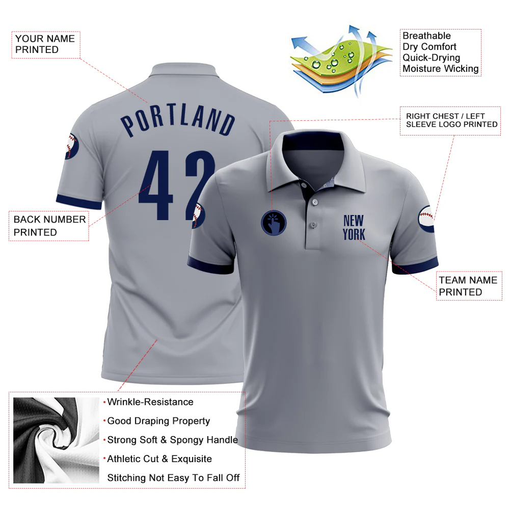 Custom Gray Navy Performance Golf Polo Shirt