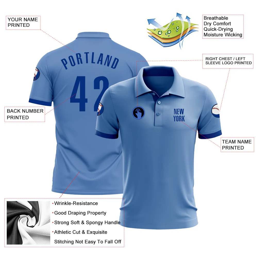 Custom Light Blue Royal Performance Golf Polo Shirt