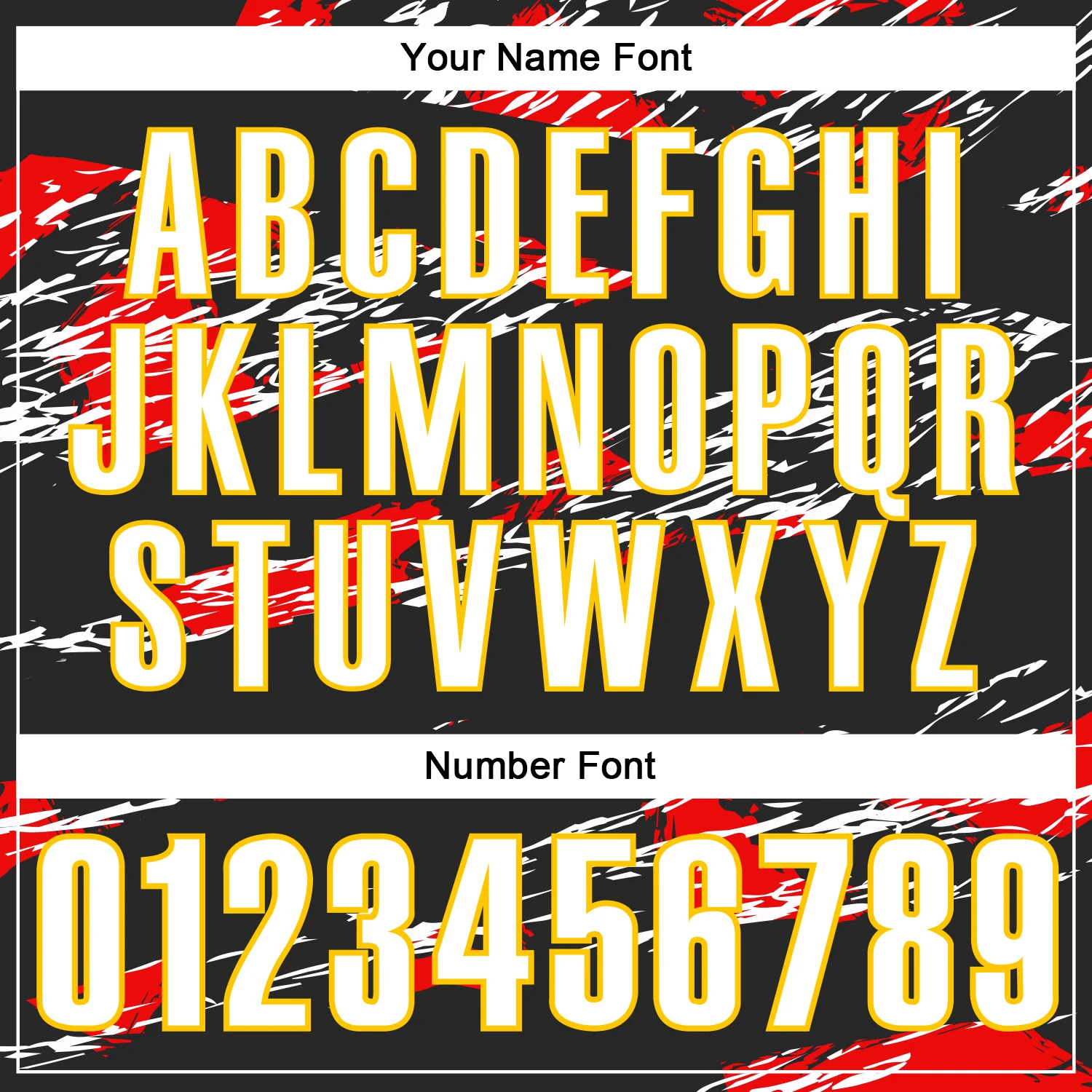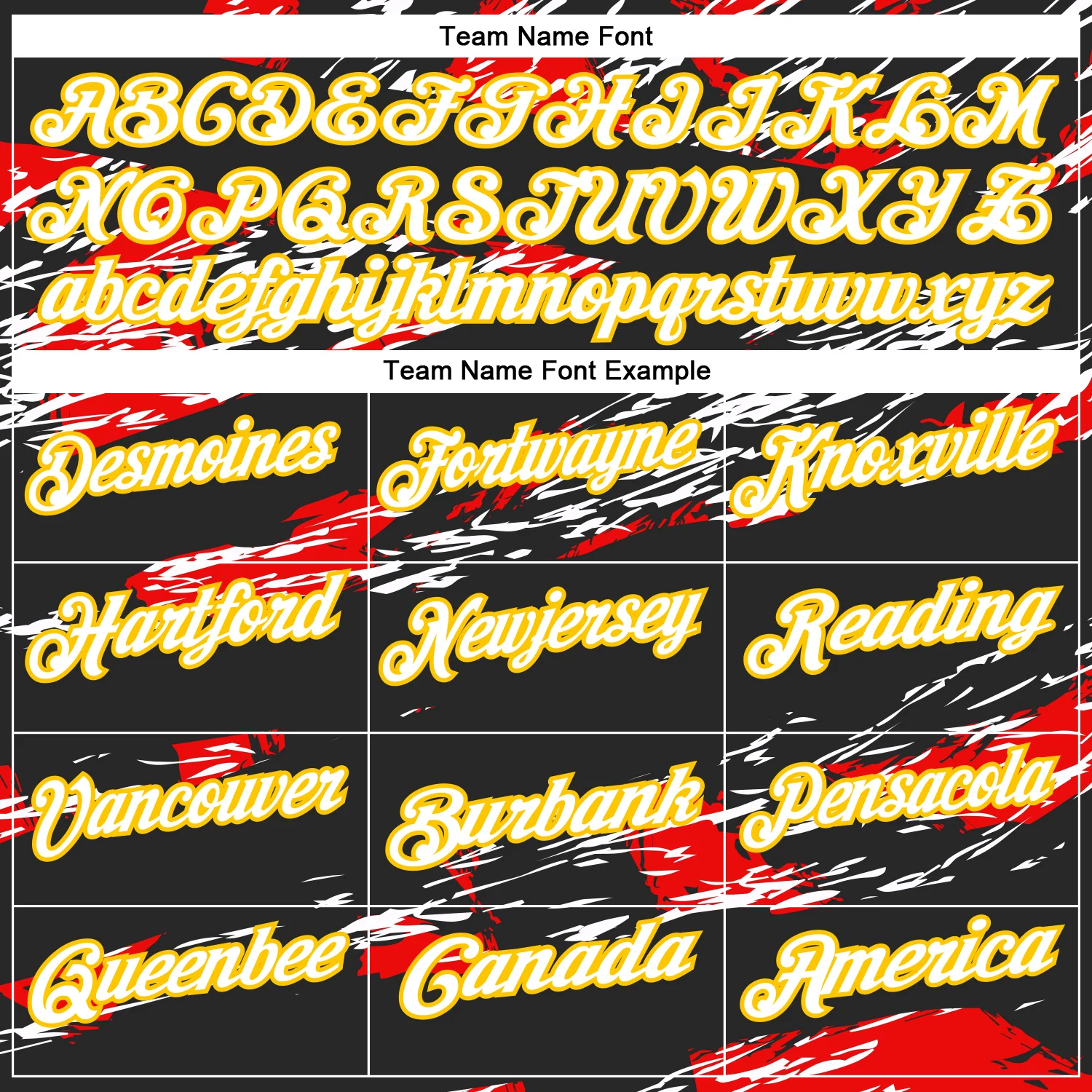 Custom Black Yellow-Red 3D Abstract Grunge Art Performance Polo Shirt
