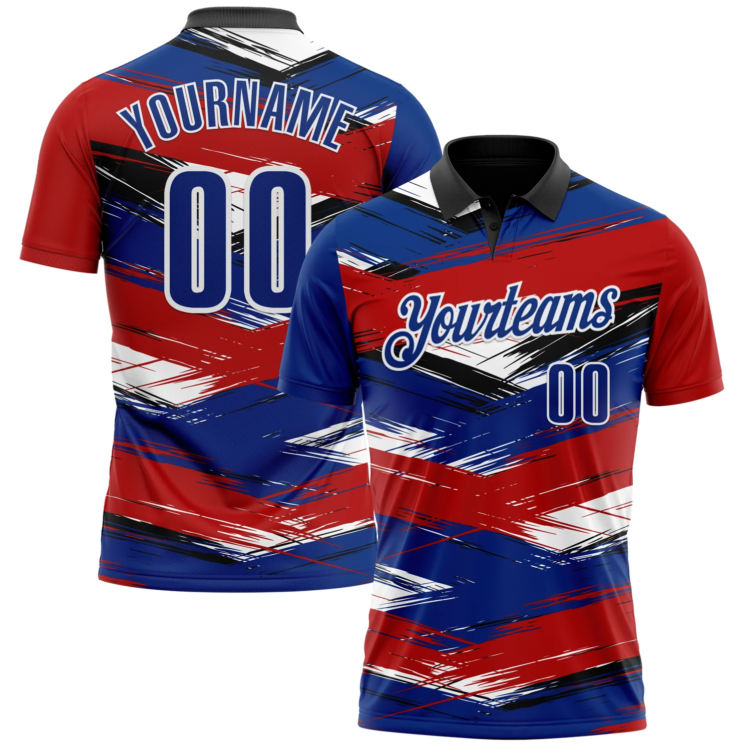 Custom Black Red-Royal 3D Bowling Abstract Grunge Art Performance Polo Shirt