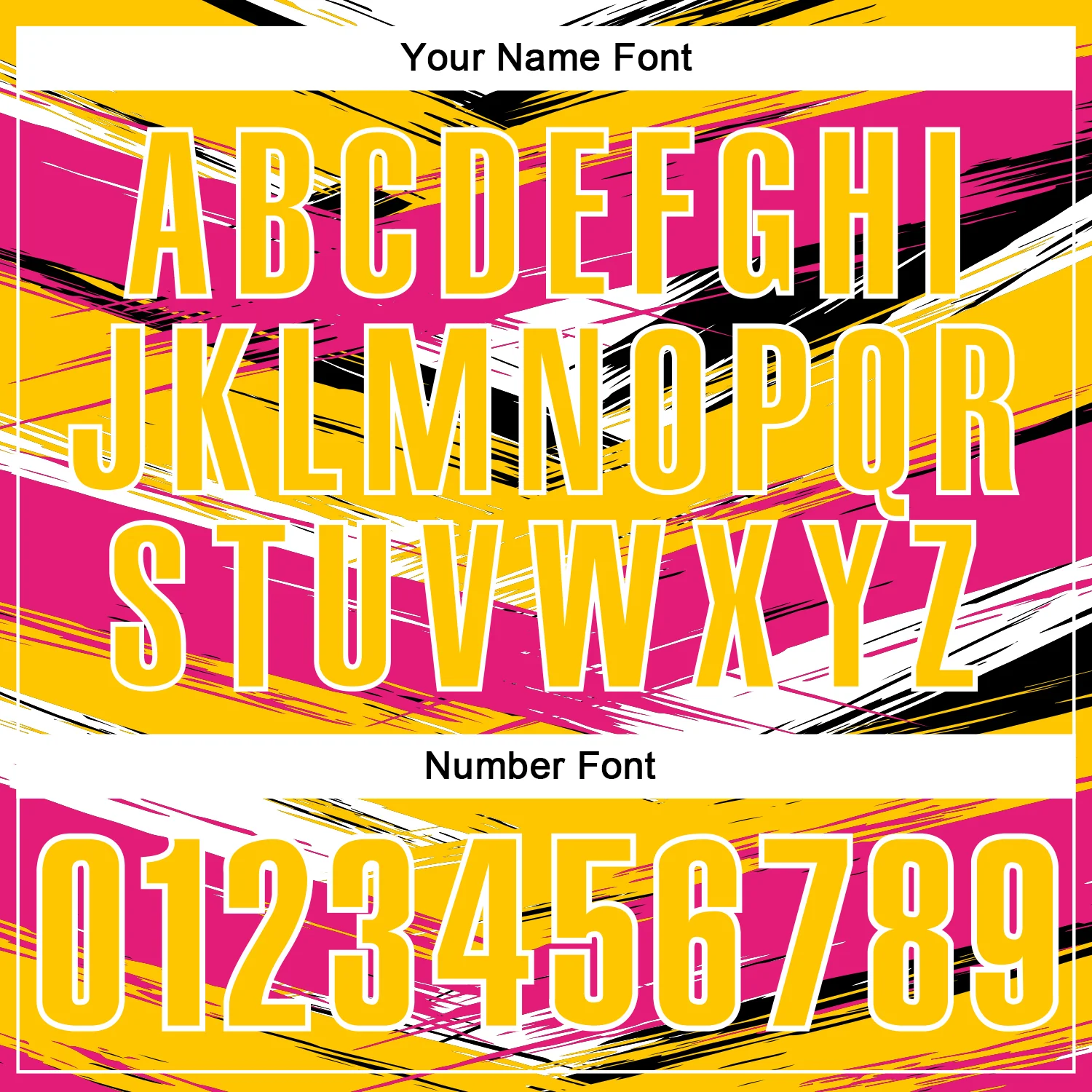 Custom Hot Pink Yellow-Black 3D Bowling Abstract Grunge Art Performance Polo Shirt