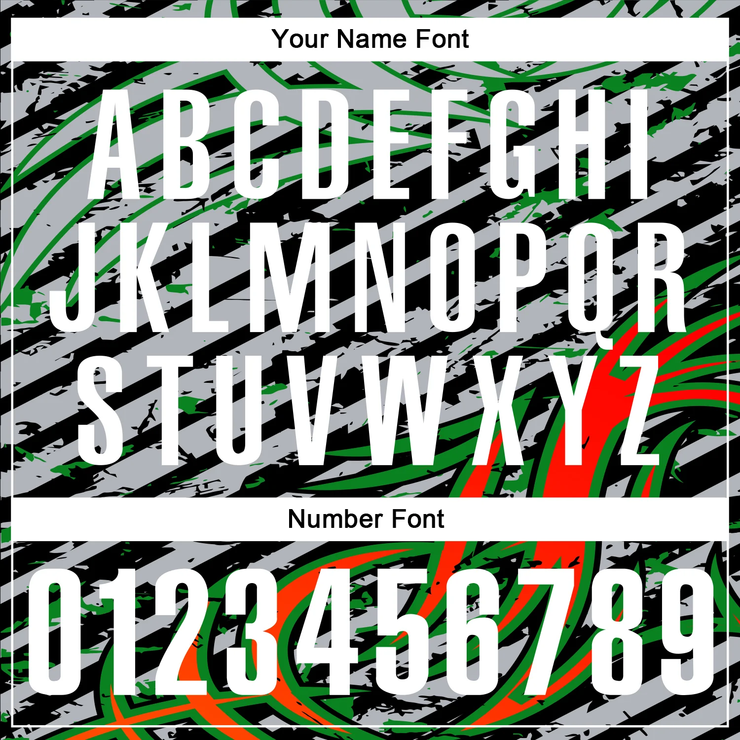 Custom Gray Black Red-Grass Green3D Bowling Line Performance Polo Shirt